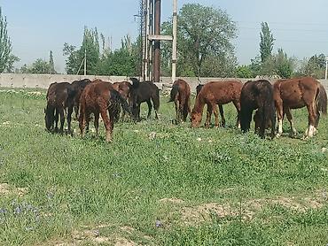13 баш тай сатылат 2 ургачы 11эркек Молодняк лошадей на выпасе