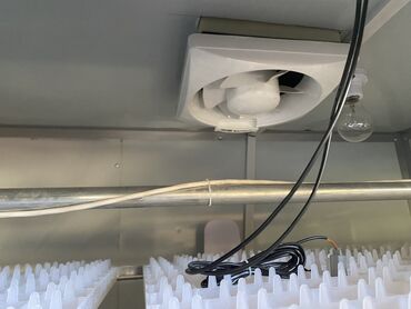 - Внутри предполагаются лотки для яиц и механизм переворота (видны через окно).