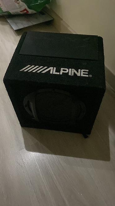 - Тип: активный сабвуфер в корпусе (акустический ящик обтянут карпетом с логотипом ALPINE)
