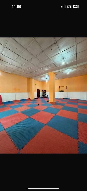 - Отдельный многофункциональный зал открытого типа с высокими потолками и колоннами, покрытый сборным амортизирующим покрытием (плитка-мат из ЭВА). Подходит для спортивных и танцевальных тренировок, йоги, единоборств, детских секций, мероприятий.