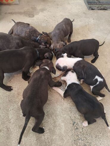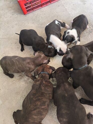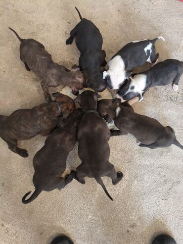 Щенки среднего размера (помет). Окрас разный: тигровый, темно-серый/почти черный, а также черно-белые с белыми отметинами. Крепкое телосложение, короткая гладкая шерсть, купирования нет. Со сходными по типу родителями-компаньонами.