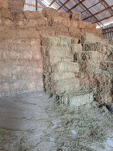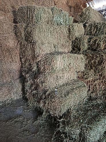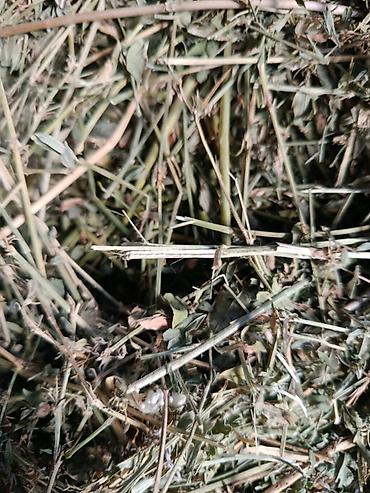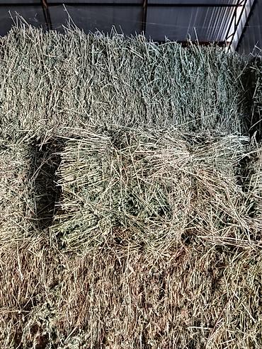 Сено в тюках, хранимое под навесом. - Формат: тюки прямоугольные, плотной перевязки, удобны для погрузки и хранения. - Заготовка: полевое разнотравье/луговое, высушено и сложено под крытым навесом...