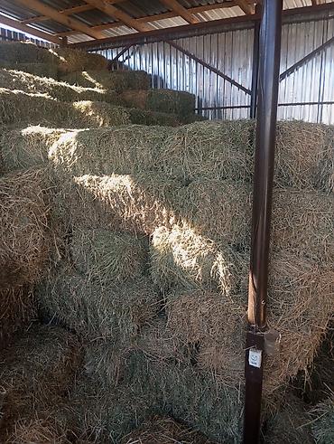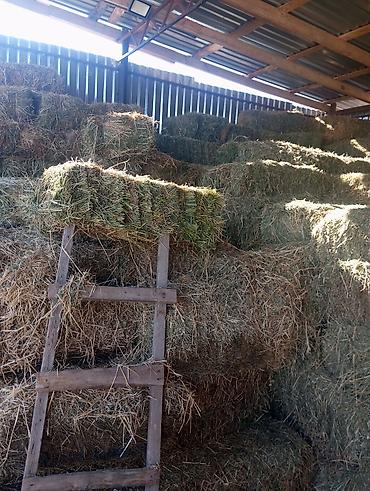 Сено в тюках - Формат: прямоугольные тюки малого размера, прессованные шпагатом, аккуратно сложены под навесом. - Заготовка и хранение: под крышей, защищено от осадков и прямого солнца; доступ к с...