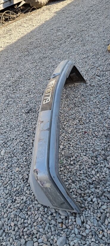 Задний бампер в сборе для автомобиля бизнес‑класса 80–90‑х годов (оригинальная деталь). Пластиковая основа с интегрированной хромированной/серебристой накладкой по кромке. С внутренней стороны уста...