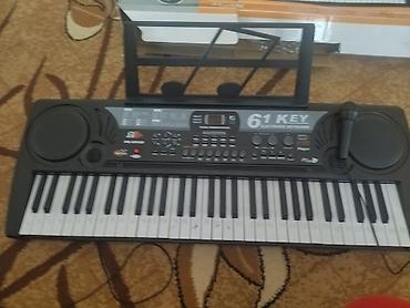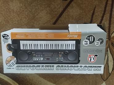 Подходит для первых шагов в музыке, домашней практики и караоке. В коробке синтезатор, микрофон и подставка для нот. Модель: MК9-6069USB (61 Key Electronic Keyboard).