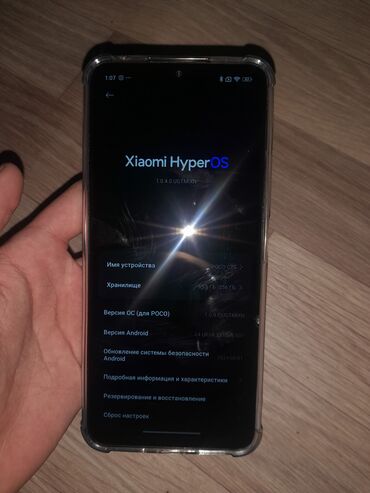 - ПО: HyperOS 1.0 (для POCO) на базе Android; показан экран сведений о системе.