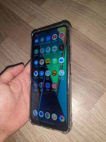- Экран: большой дисплей с каплевидным вырезом под фронтальную камеру. На фото видны тонкие рамки; установлен защитный чехол-бампер.