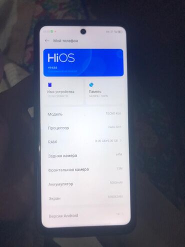 - Экран: 6.6" (примерно) с вырезом по центру, разрешение 1080×?: HiOS v14.5.0 на базе Android 14