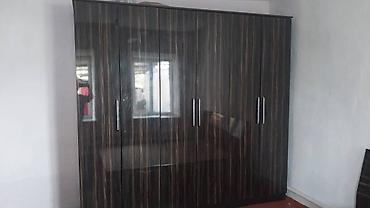 - Шкаф-купе распашного типа на 5 дверей с вертикальными ручками; большая вместимость для одежды и белья.