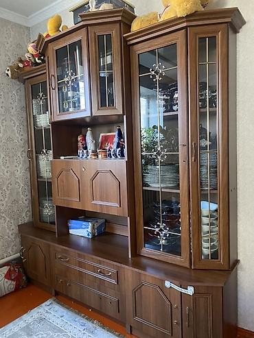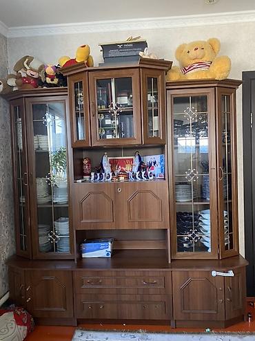Стенка-гостиная из ламинированного ДСП в оттенке тёплого ореха.
