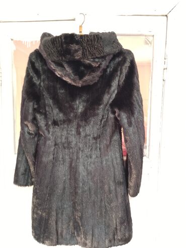 Шуба из натурального меха — норка, классического черного цвета. Характеристики: - Длина: примерно до колена. - Крой: прямой, слегка свободный силуэт. - Воротник: стойка. - Застежка: ряд скрытых кр...