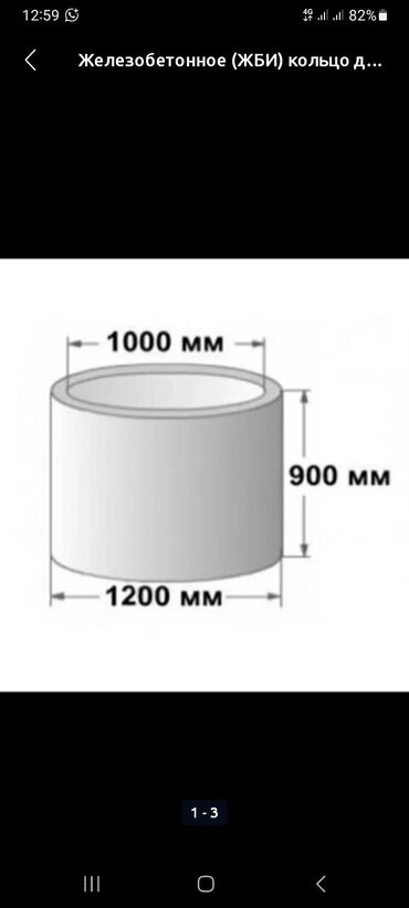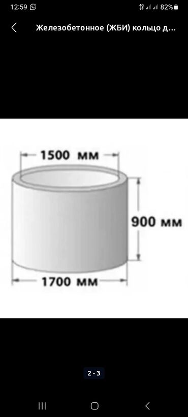 Железобетонные (ЖБИ) кольца для колодцев и инженерных колодцев. - Материал: тяжелый бетон с армированием, заводское изготовление. - Типы: полнотелые кольца разной высоты; видны монтажные петли для...
