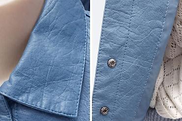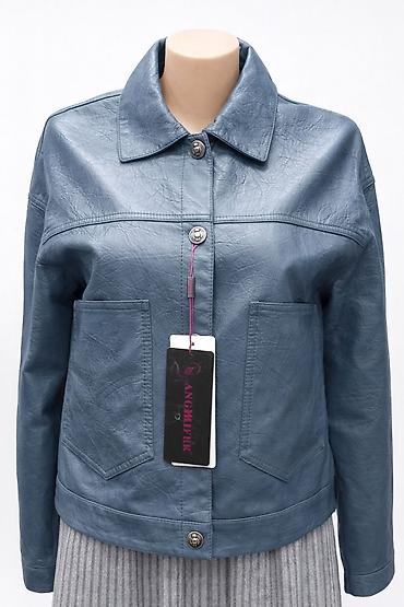 Женская куртка из экокожи, цвет пыльно-синий.