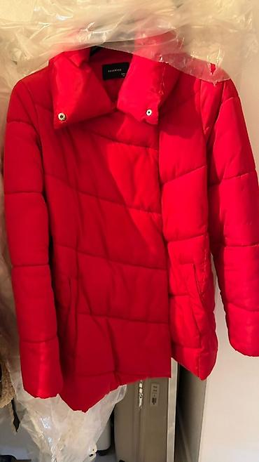 Оба изделия на вешалках в защитных чехлах. Идеально для осени и межсезонья; яркая куртка — для повседневных образов, пальто — для более классических комплектов. Бренд: Reserved (на красной куртке ярлык виден).