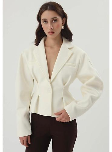 Женский укороченный жакет молочного цвета - Силуэт: приталенный, с