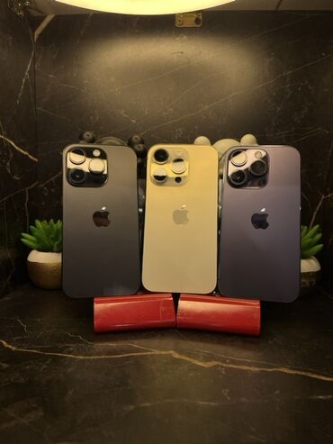 IPhone 14 Pro/14 Pro оригинальные смартфоны Apple с тройной системой камер и лидаром. На фото представлены три цвета: черный (Graphite/Space Black), золотой и фиолетовый (Deep Purple).