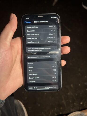 IPhone 11, 128 ГБ, черный состояние отличное все оригинальное только трещины на заднем корпусе и на экране Характеристики и детали по фото: - Модель: iPhone 11 (номер модели MWJL2LL/A) - Память: 1...
