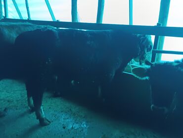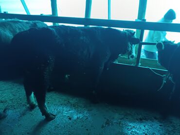 Бык-производитель, чёрно-пёстрый окрас. Крупный, сильный, с широкой грудью и хорошо развитыми мышцами. Содержится в крытом загоне, на привязи, с кормушкой для сена. На фото — реальное животное, спо...
