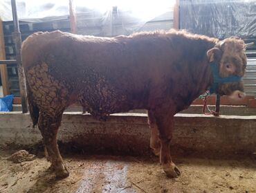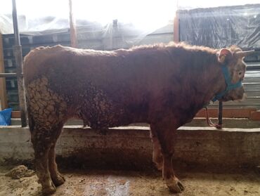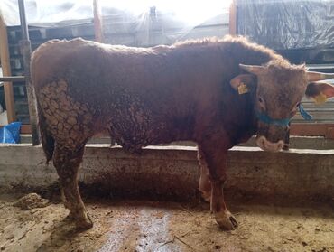 Племенной бык, порода ЛЮМИЗИН мясного направления (рыжий масти, рога, биркован). Подходит для разведения и улучшения мясных качеств стада.