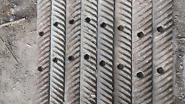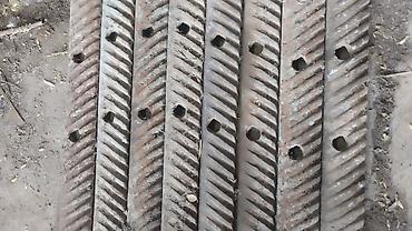 - Набор рифлёных планок/решетин (10 шт.): стальные полосы с диагональной насечкой и продолговатыми монтажными отверстиями по всей длине. Подходят как рабочие планки/решёта, накладки или элементы транспортеров/очистителей для комбайнов, жаток, зерноочистительных или кормоуборочных агрегатов. Длина каждой планки примерно 1–1,2 м, толщина и шаг насечки одинаковые во всём комплекте.