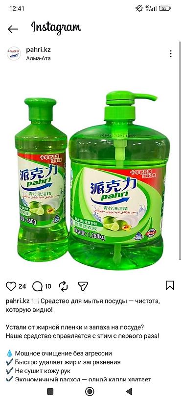 1) Жидкость для мытья посуды Pahri (зеленая, аромат лайма)