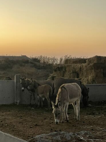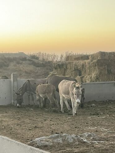 - На продажу группа ослов: взрослые особи и молодняк. На фото видно несколько животных разного размера и окраса (светло-серые, серо-бурые).