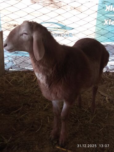 Овца мясного направления (хвостатая, безрогая), рыже‑бурой масти. - Тип: овца/ягнуха, короткошерстная, уши свисающие. - Окрас: однородный рыже‑бурый с более светлым брюхом. - Телосложение: крепкий...