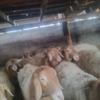 Овцы (стадо/группа) - Порода/тип: шерстные, светлая шерсть, головы и уши рыжевато-бежевого окраса, длинноухие. - Содержание: в крытом помещении, секции с ограждениями. - Подходят для разведения и ...