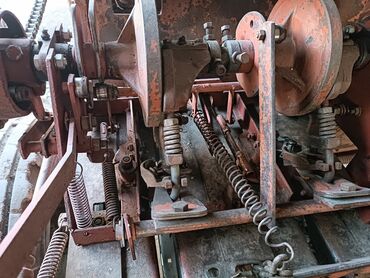 - Узловязатели (двойной комплект) с пружинными натяжителями, кулачковыми валами и регулировочными тягами; предусмотрены места под шпагатные катушки.