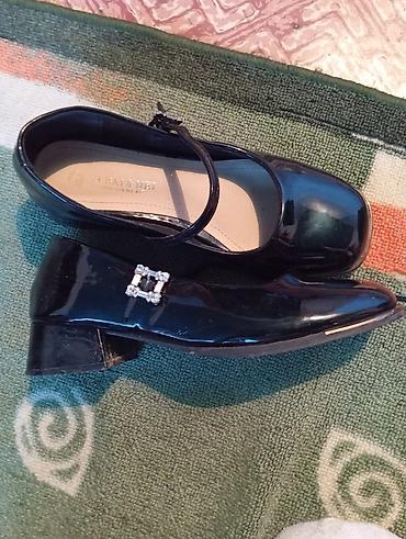 Лаковые туфли для девочки, почти новый - Модель: Mary Jane с ремешком на пряжке и декоративной цепочкой - Цвет: чёрный, глянцевый - Верх: лаковая искусственная кожа - Подошва: утолщённая, рельефн...
