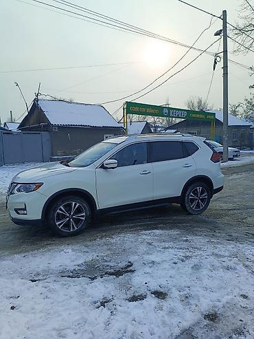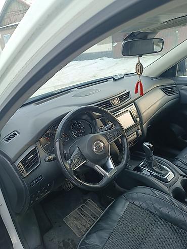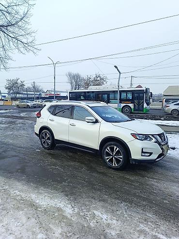 Nissan Rogue (X‑Trail) — кроссовер белого цвета с бензиновым двигателем и вариатором (CVT). Полный электропакет, кнопка запуска, электронный селектор режимов трансмиссии.