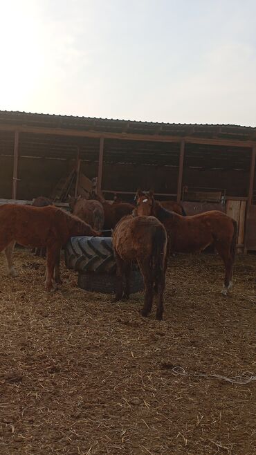 Ушул тайлар сатылат семиз быйылкы тайлар Характеристики: - Порода/масти: темные и рыжие масти. - Возраст: молодые особи (визуально — подростки/молодняк). - Содержание: в крытом помещении, привязное...