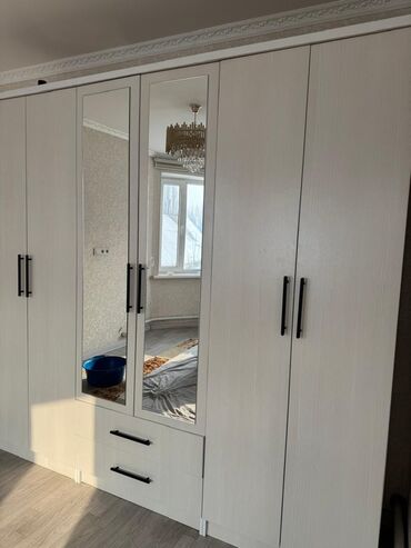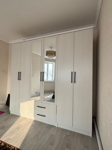 Шкаф для одежды с зеркалом шкафтын абалы жакшынакай боюнча и жууркандар жапжаны боюнча 1500ден бир кишилик - Материал: ламинированные панели под белый мрамор. - Компоновка: три высокие створки сни...