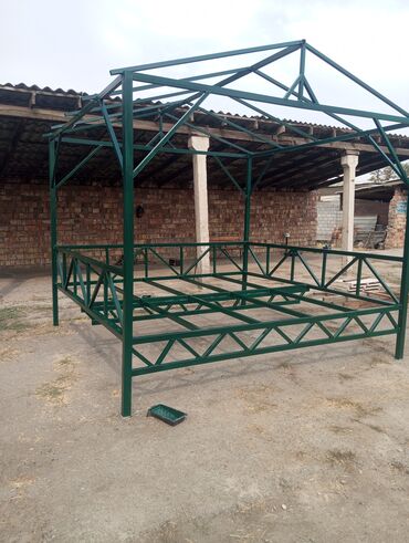 - Каркасы беседок и навесов: прочная пространственная ферменная система, подготовка под кровлю, покраска антикоррозийными составами.
