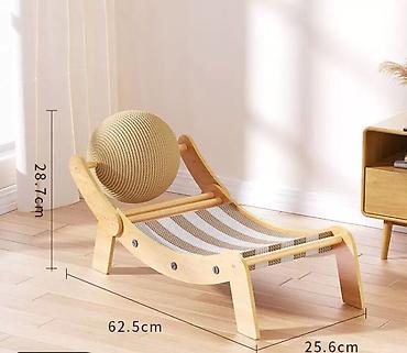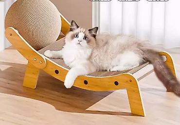 - Когтеточка: съёмный шар из плотного гофрокартона на задней стойке — для точения когтей и игры.