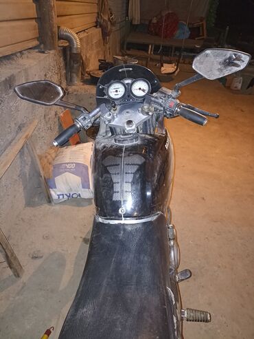 - Оснащение: передний обтекатель с ветровиком, зеркала, поворотники, спидометр и тахометр с аналоговыми шкалами, боковая подножка.