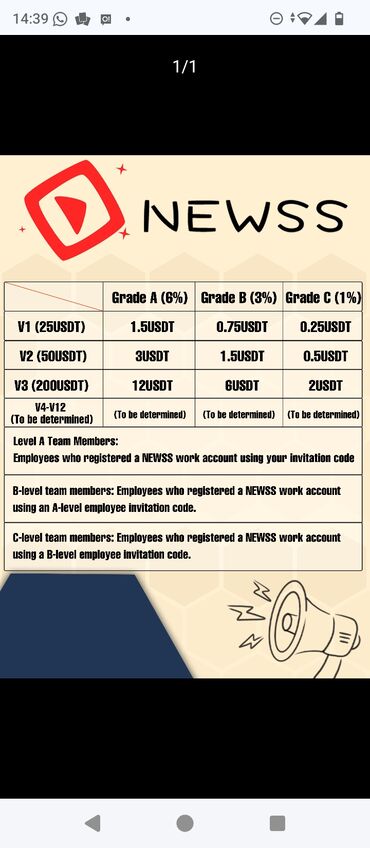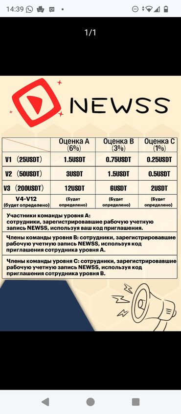 NEWSS — реферальная программа с многоуровневой командной структурой и фиксированными бонусами в USDT.