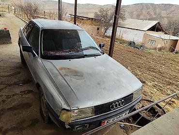 Audi 100 C3 седан, левый руль. Основные особенности: - Кузов: серый цвет, 4 двери, задний бампер с фаркопом, заводские шильдики Audi 100 C3. Лобовое с полосой-наклейкой Audi. - Оптика: прямоуголь...