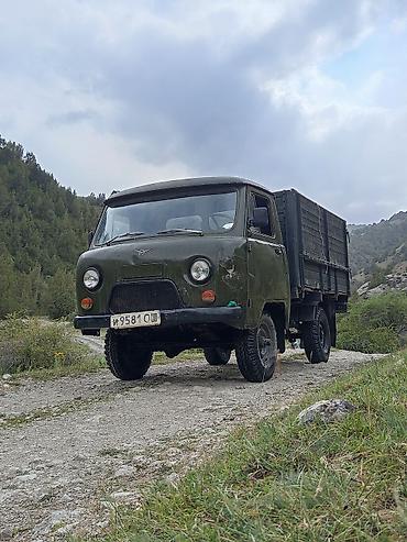 УАЗ бортовой грузовик (семейство «буханка»/фермер), окраска хаки. Полный привод, высокая проходимость — подходит для сельхозработ, горных и лесных дорог.