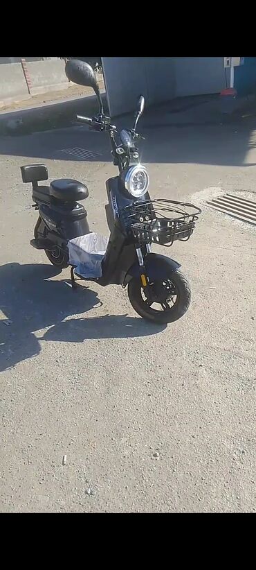 Электроскутер городского типа с корзиной и дополнительным пассажирским