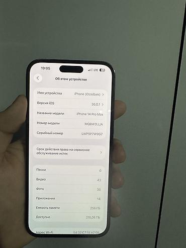 - На фото показан экран «Об этом устройстве» с моделью: iPhone 14 Pro Max (модель MQ8W3LL/A), серийный номер виден на скрине