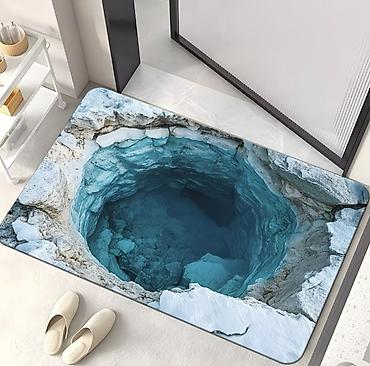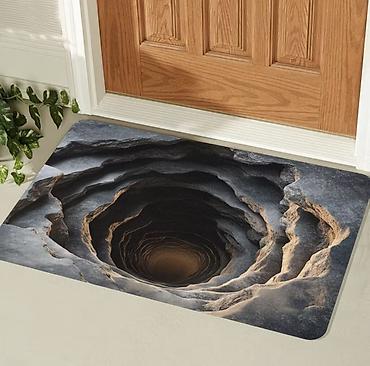- Яркий фотопринт с оптической иллюзией глубокой ямы/карстовой воронки: зрелищный декор для прихожей, ванной, лоджии, у двери.