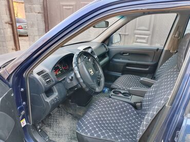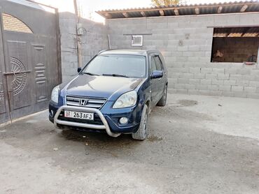 Honda CR‑V, кроссовер синего цвета, правый руль. Кузов 5‑дверный, полный комплект остекления с тонировкой заднего ряда, рейлинги на крыше, задняя дверь с запасным колесом в пластиковом кожухе. Спереди установлена силовая дуга. Легкосплавные диски, покрышки всесезонного типа. Передние и задние противотуманные фары.