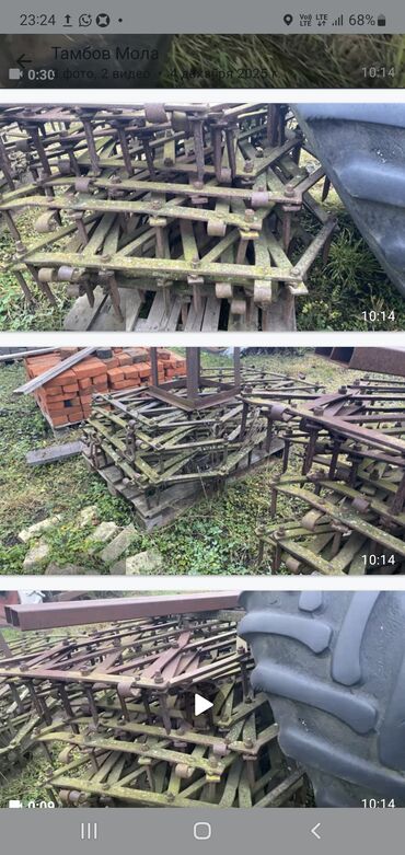 Бороны зубовые/секции для обработки почвы - Металлические секции зубовой бороны, комплект для тракторной навески/прицепа. - Конструкция: решётчатые рамы с зубьями и шарнирными соединениями, проуши...