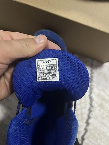 - Цвет: темно‑синий/синий с белыми вставками и красной подошвой