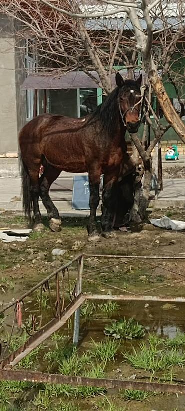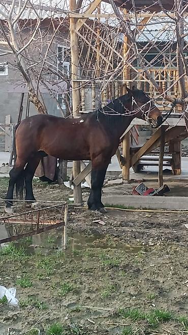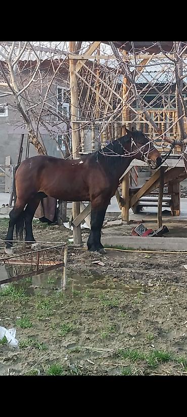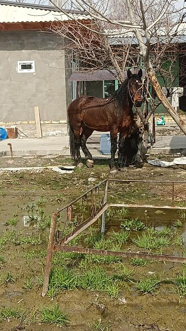 Лошадь гнедой масти - Порода: без указания, компактного сложения - Масть: гнедая, темная грива и хвост, отметина на лбу (звездочка) - Пол: не указан - Особенности: спокойная в недоуздке, стоит при...