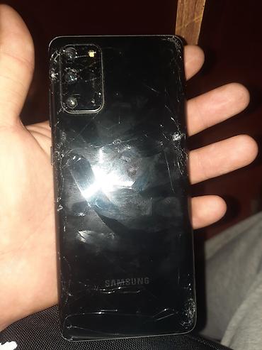 На фотографиях видно: разбитый дисплей с трещинами и вертикальной полосой, повреждения стекла по углам; задняя крышка также треснута, стекло блока камер с повреждениями. Видно, что устройство включается (экран с часами/уведомлениями). Подойдет для восстановления или на запчасти (плата, модули, кнопки, разъемы и др.). Модель и внешний вид соответствуют линейке Galaxy S20 в черном цвете.