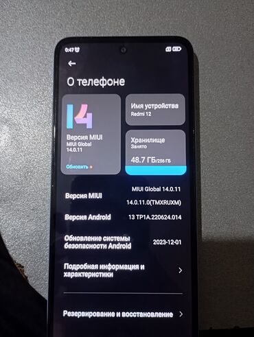 - ПО: MIUI Global 14.0.11 (TMXRUXM) на базе Android 13; обновление системы безопасности от 2023‑12‑01.