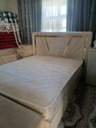 - Матрас на кровати (пружинный/ортопедический тип не указан) со стёганым верхним слоем в светлом цвете.