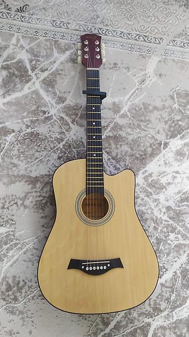 Акустическая гитара Aisheng, форма корпуса дредноут с вырезом (cutaway) для удобного доступа к верхним ладам. Натуральная светлая дека, розетка с концентрическими кольцами, тёмный гриф с позиционными метками. 6 струн, классическая колковая механика с открытыми колками и кремовыми колпачками. Мост тёмного цвета с белыми пинами, стандартная мензура. На гриф установлен каподастр. Отлично подходит для аккомпанемента и обучения, удобная эргономика и универсальное звучание дредноута. Бренд: aisheng (логотип на голове грифа).